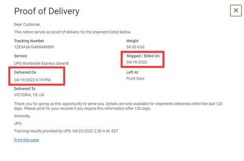 The UPS waybill shows that the bounce house left China on the 14th and arrived at the customer's address on the 19th, which is ultimately equivalent to that our production time is 5 days and the shipping time is 6 days, which is 5 days earlier than the expected arrival at the customer's address.